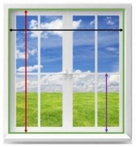 - Measure the width of each windows, including the frame on both sides (see green line on photo below).